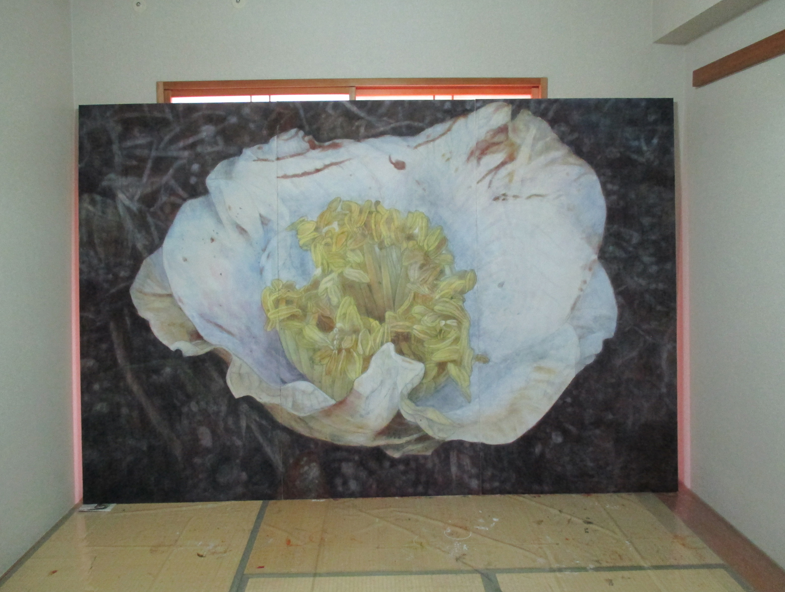はじめは版画というメディアで作品を制作していましたが、やはり日本画教員である以上、日本画で作品を作らなければいけないという無言のプレッシャーがあり、はじめはメディアの違いだけで、どんなメディアでも表現することは可能だと自分に言い聞かせていましたが、やはり日本画というジャンルは現代美術とは異なる文化で、そこにギャップを感じ、はじめはそれを克服しようと試行錯誤しながら、努力を試みましたが、やがて挫折し、絶望感を感じるようになりました。