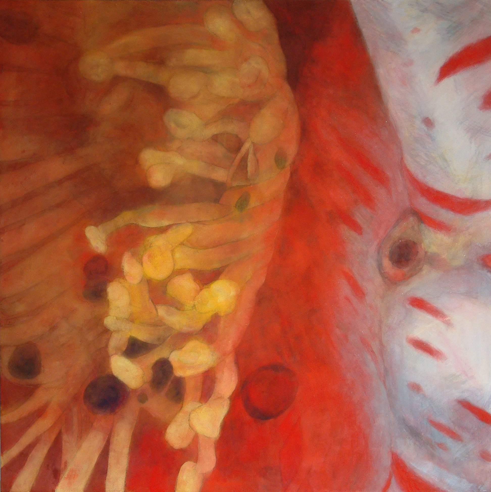 当時はこの頃の作品のテーマは環境問題、とりわけ自然環境の破壊への警鐘だと言ってきましたが、今作品を見ても、作品からはそういったコンセプトはあまり見えてこず、意識の上ではそうだったのでしょうが、無意識ではモチーフとなった樹木や花などの植物は、私自身を表していたのではないかと思います。
